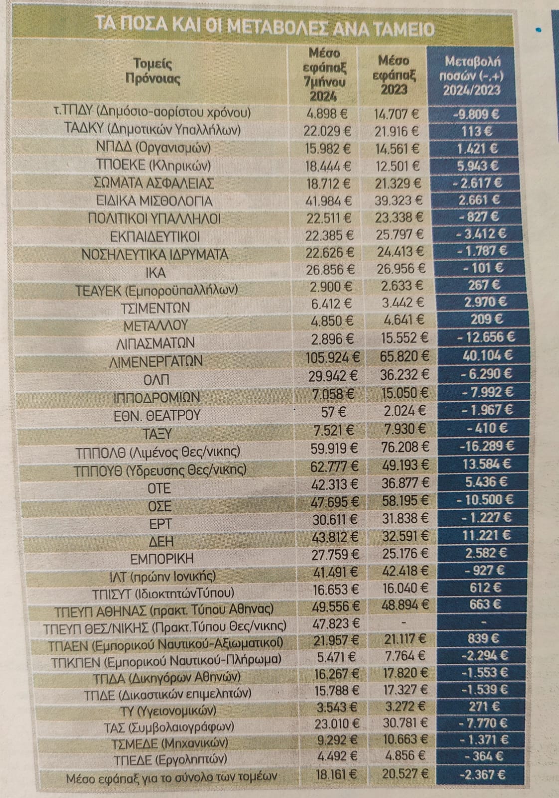 Το γενικό μέσο εφάπαξ για το σύνολο των 38 τομέων πρόνοιας του ΕΦΚΑ – ΕΤΕΑΕΠ διαμορφώνεται για τις πληρωμές του επταμήνου στα 18.161 ευρώ, από 20.527 ευρώ που ήταν στις πληρωμές του 2023.