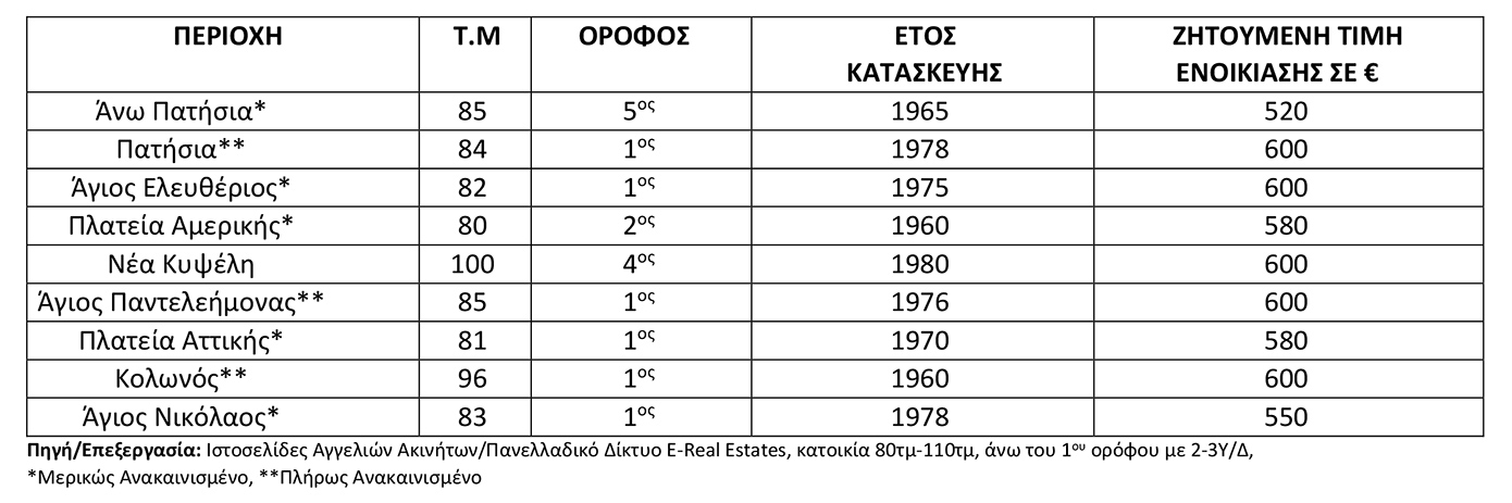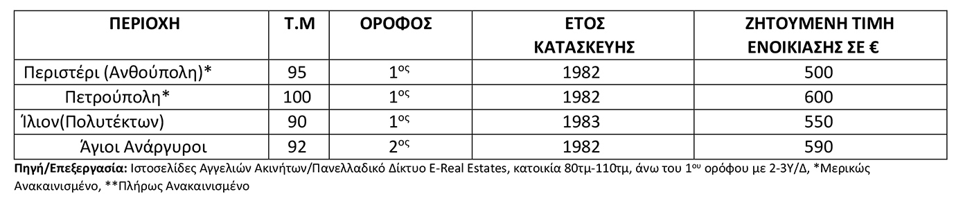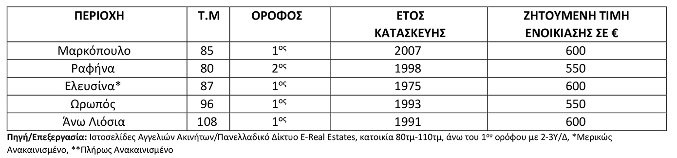 Υπόλοιπο Αττικής: Παραδείγματα οικογενειακών κατοικιών με ζητούμενο μίσθωμα έως 600 ευρώ