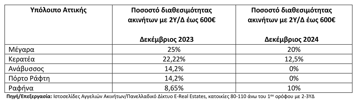 Μόλις το 11% των διαθέσιμων προς μίσθωση ακινήτων κατάλληλα για οικογένειες έχουν ζητούμενο μίσθωμα έως 600€ στις περιοχές του Υπολοίπου Αττικής.