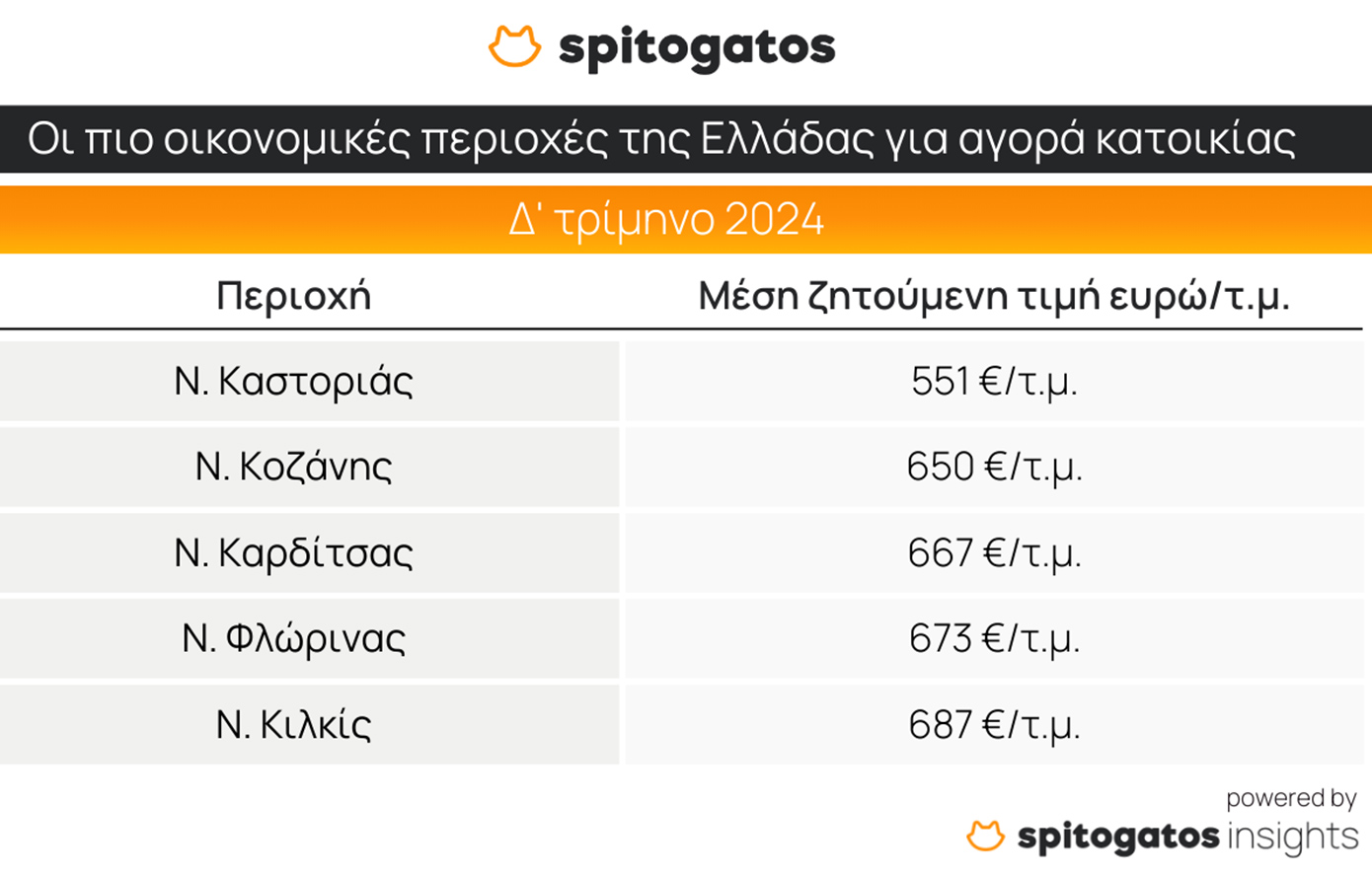Αντίθετα, οι πιο οικονομικές περιοχές για αγορά κατοικίας περιλαμβάνουν τους Νομούς Καστοριάς, Κοζάνης, Καρδίτσας, Φλώρινας και Κιλκίς. Αυτές οι περιοχές παραμένουν ελκυστικές για όσους αναζητούν προσιτές επιλογές είτε για ιδιοκατοίκηση είτε για επενδυτικούς σκοπούς. Στον τομέα της ενοικίασης, οι φθηνότερες περιοχές είναι ο Νομός Κιλκίς, το Υπόλοιπο Νομού Θεσσαλονίκης, οι Νομοί Πέλλας, Ημαθίας και Καστοριάς.
