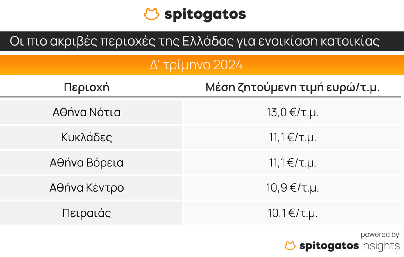 Στον τομέα της ενοικίασης κατοικιών, τα Νότια Προάστια διακρίνονται και πάλι για τις υψηλότερες μέσες ζητούμενες τιμές. Τη λίστα συμπληρώνουν οι Κυκλάδες, τα Βόρεια Προάστια, το κέντρο της Αθήνας και ο Πειραιάς.