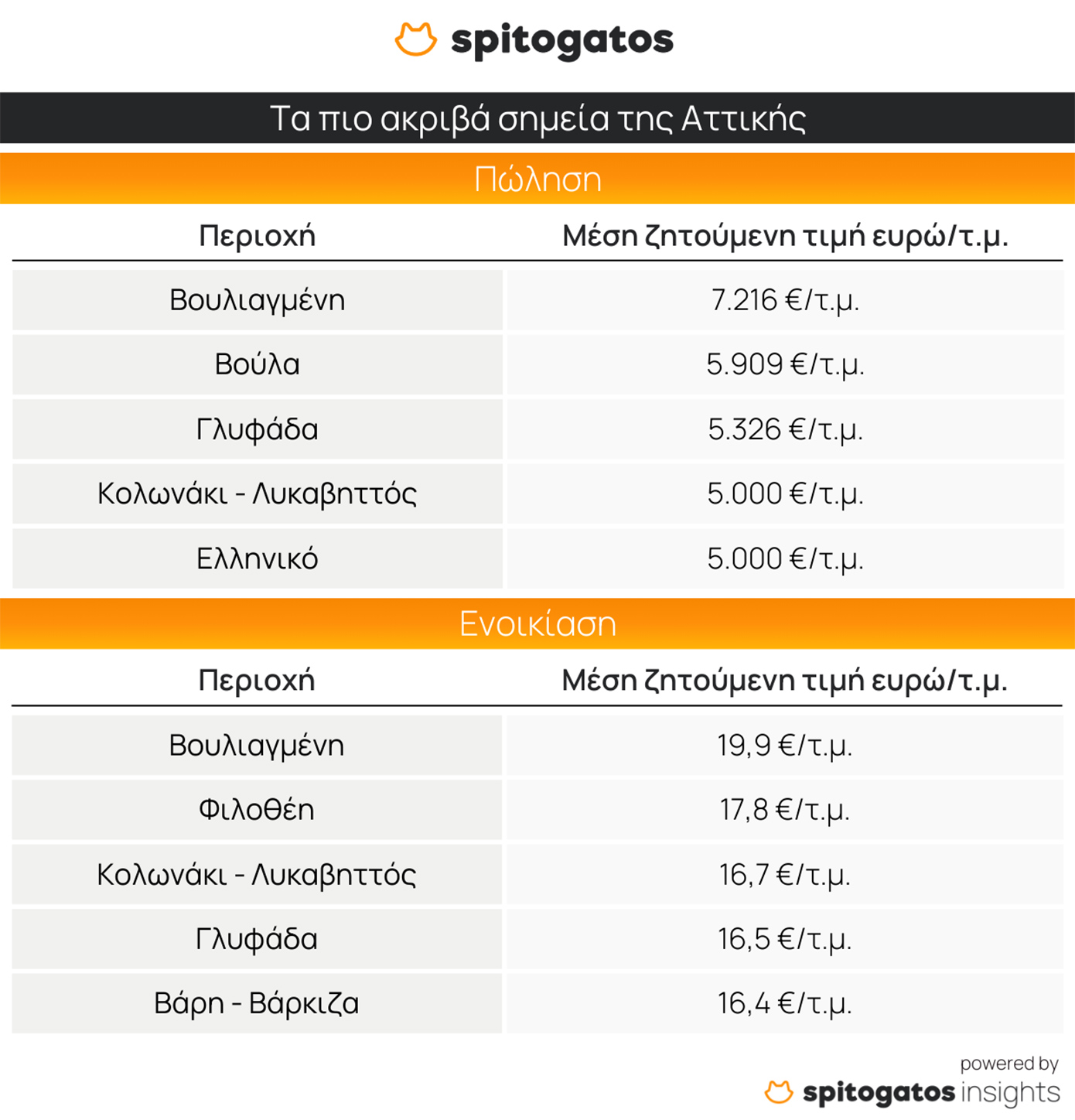Στην Αττική, η Βουλιαγμένη ξεχωρίζει ως η ακριβότερη περιοχή για αγορά κατοικίας, με τη μέση ζητούμενη τιμή να φτάνει τα 7.216 ευρώ/τ.μ. Η Βούλα, η Γλυφάδα, το Κολωνάκι-Λυκαβηττός και το Ελληνικό ακολουθούν.