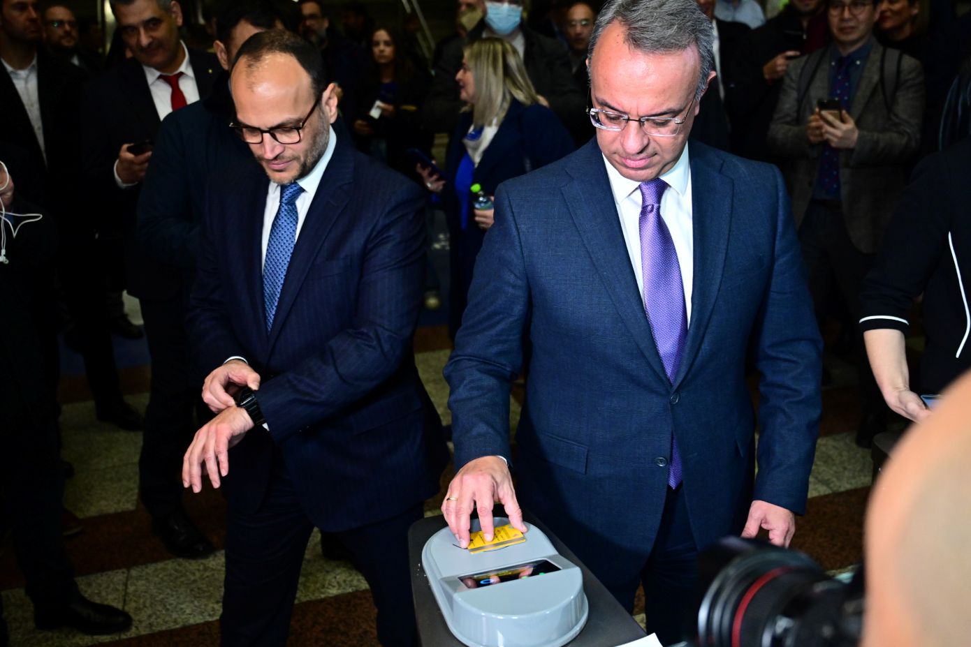Τη νέα υπηρεσία «tap2ride» παρουσίασαν, σήμερα, σε ειδική εκδήλωση στον σταθμό του Μετρό στο Σύνταγμα, ο Υπουργός Υποδομών και Μεταφορών κ. Χρήστος Σταϊκούρας, ο Υφυπουργός Υποδομών και Μεταφορών, αρμόδιος για τις Μεταφορές κ. Βασίλης Οικονόμου, η Γενική Γραμματέας Μεταφορών κα Δέσποινα Παληαρούτα, ο Διευθύνων Σύμβουλος του Υπερταμείου κ. Γρηγόρης Δ. Δημητριάδης, ο Διευθύνων Σύμβουλος του ΟΑΣΑ κ. Γιώργος Σπηλιόπουλος, ο Πρόεδρος Δ.Σ. της HST Α.Ε, θυγατρικής του Όμιλου ΓΕΚ ΤΕΡΝΑ, κ. Γιώργος Αγραφιώτης, η Γενική Διευθύντρια της Visa για Ελλάδα, Κύπρο, Μάλτα και Ισραήλ κα Sevi Vassileva και ο Γενικός Διευθυντής της NBG Pay κ. Χριστόφορος Χατζόπουλος.