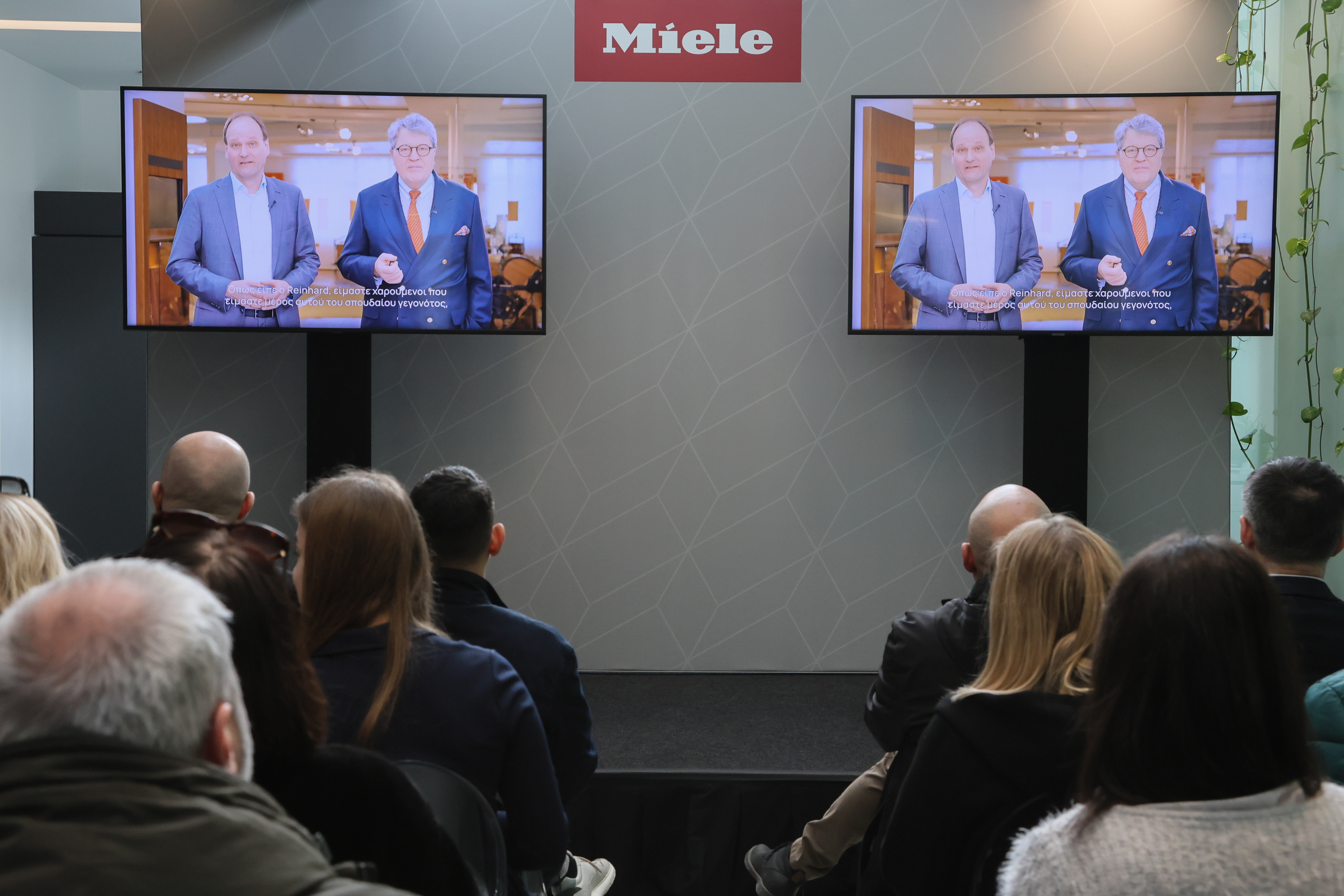 Στο πλαίσιο της εκδήλωσης, οι απόγονοι των δύο ιδρυτών της γερμανικής εταιρείας, Markus Miele και Reinhard Zinkann έστειλαν το δικό τους μήνυμα και υπογράμμισαν την εμπιστοσύνη τους στην ελληνική ομάδα και τη στρατηγική ανάπτυξης που ακολουθεί.