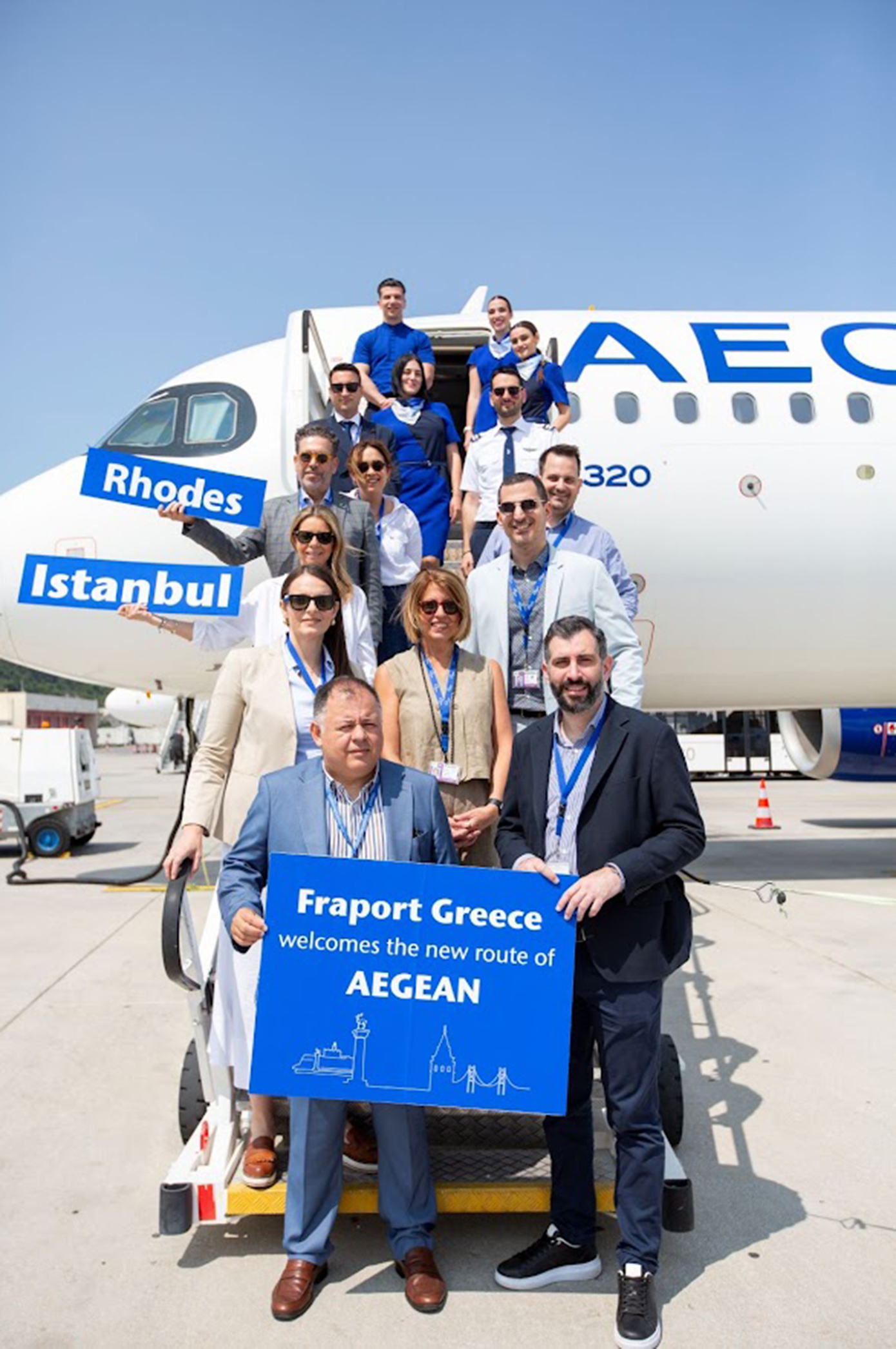 Η τελετή ολοκληρώθηκε με την καθιερωμένη κοπή της κορδέλας και τη φωτογράφιση με το πλήρωμα μπροστά από το αεροσκάφος της AEGEAN, επισφραγίζοντας την έναρξη της νέας αεροπορικής σύνδεσης μεταξύ Ρόδου και Κωνσταντινούπολης.