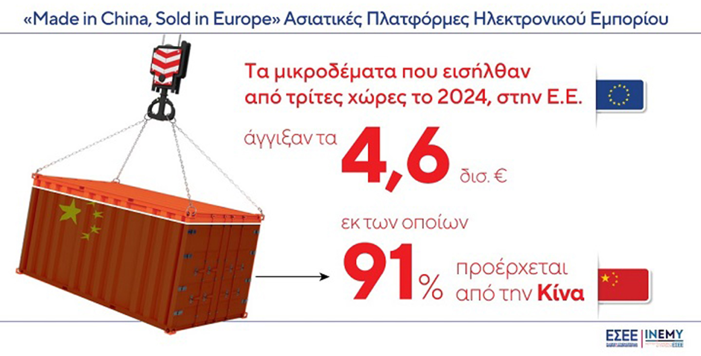 Η Ελλάδα καταγράφει σημαντικές δημοσιονομικές απώλειες που εκτιμώνται μεταξύ 188 και 204 εκατομμυρίων ευρώ λόγω της ανεξέλεγκτης δραστηριότητας των ασιατικών πλατφορμών ηλεκτρονικού εμπορίου στην εγχώρια αγορά, όπως προκύπτει από πρόσφατη μελέτη της Ελληνικής Συνομοσπονδίας Εμπορίου και Επιχειρηματικότητας (ΕΣΕΕ). Η μελέτη, που παρουσιάστηκε, στο Γραφείο του Ευρωπαϊκού Κοινοβουλίου στην Αθήνα, ανέδειξε την εκθετική αύξηση των μεριδίων αγοράς αυτών των πλατφορμών, καθώς και το μεγάλο οικονομικό και κοινωνικό κόστος που επιφέρουν.