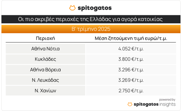Στην κορυφή της λίστας των ακριβότερων περιοχών για αγορά κατοικίας διατηρούνται τα Νότια Προάστια της Αττικής, με μέση ζητούμενη τιμή πώλησης 4.052 ευρώ/τ.μ.