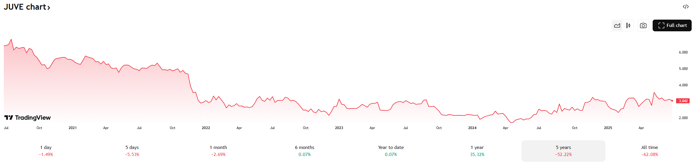 Η μετοχή της παρουσιάζει ευαισθησία όχι μόνο στα αθλητικά αποτελέσματα αλλά και στις εμπορικές συμφωνίες και στις στρατηγικές συνεργασίες. Για τους επενδυτές, η Juventus αποτελεί έναν συνδυασμό: πανίσχυρο brand με φανατική βάση και παράλληλα υψηλότερο ρίσκο λόγω της αβέβαιης χρηματοοικονομικής πορείας.