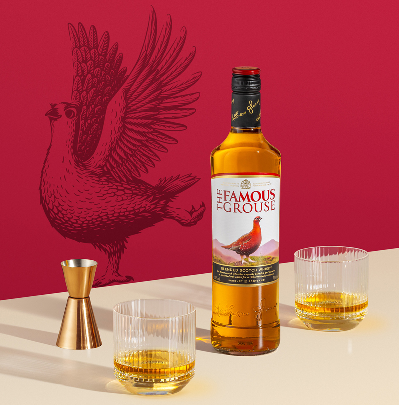 Το σήμα κατατεθέν του The Famous Grouse, η χαρακτηριστική πέρδικα, συμβολίζει την ελευθερία, την αντοχή και τη γνήσια αγριότητα της φύσης, αξίες που αποτυπώνονται στον χαρακτήρα του whisky και εναρμονίζονται με τη φιλοσοφία ποιότητας που υπηρετεί σταθερά η ΑΜΒΥΞ.