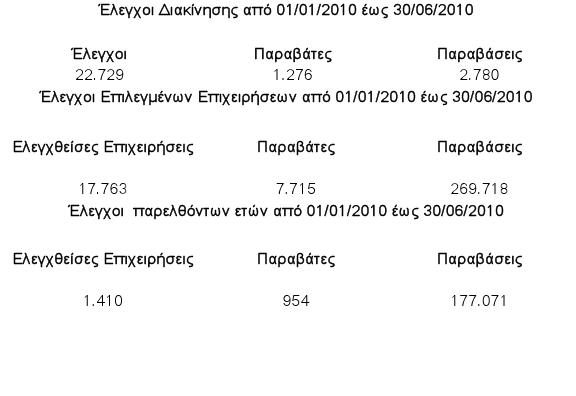 Συγκεκριμένα το ΣΔΟΕ στο διάστημα από 1η Ιανουαρίου μέχρι 30 Ιουνίου έχει πραγματοποιήσει 22.729 έλεγχους διακίνησης, 17.763 ελέγχους επιλεγμένων επιχειρήσεων και 1.410 ελέγχους παρελθόντων ετών σε επιχειρήσεις, από τους οποίους έχουν προκύψει τα παρακάτω αποτελέσματα: