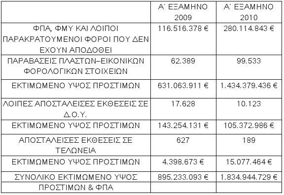 Οι «Ράμπο» του Σώματος Δίωξης Οικονομικού Εγκλήματος, σύμφωνα με ανακοίνωση του υπουργείου Οικονομικών, φαίνεται ότι κάνουν δουλειά. Τουλάχιστον αυτό δείχνουν τα στοιχεία για το πρώτο εξάμηνο Ιανουαρίου – Ιουνίου 2010 σε σχέση με το αντίστοιχο διάστημα του προηγούμενου έτους.