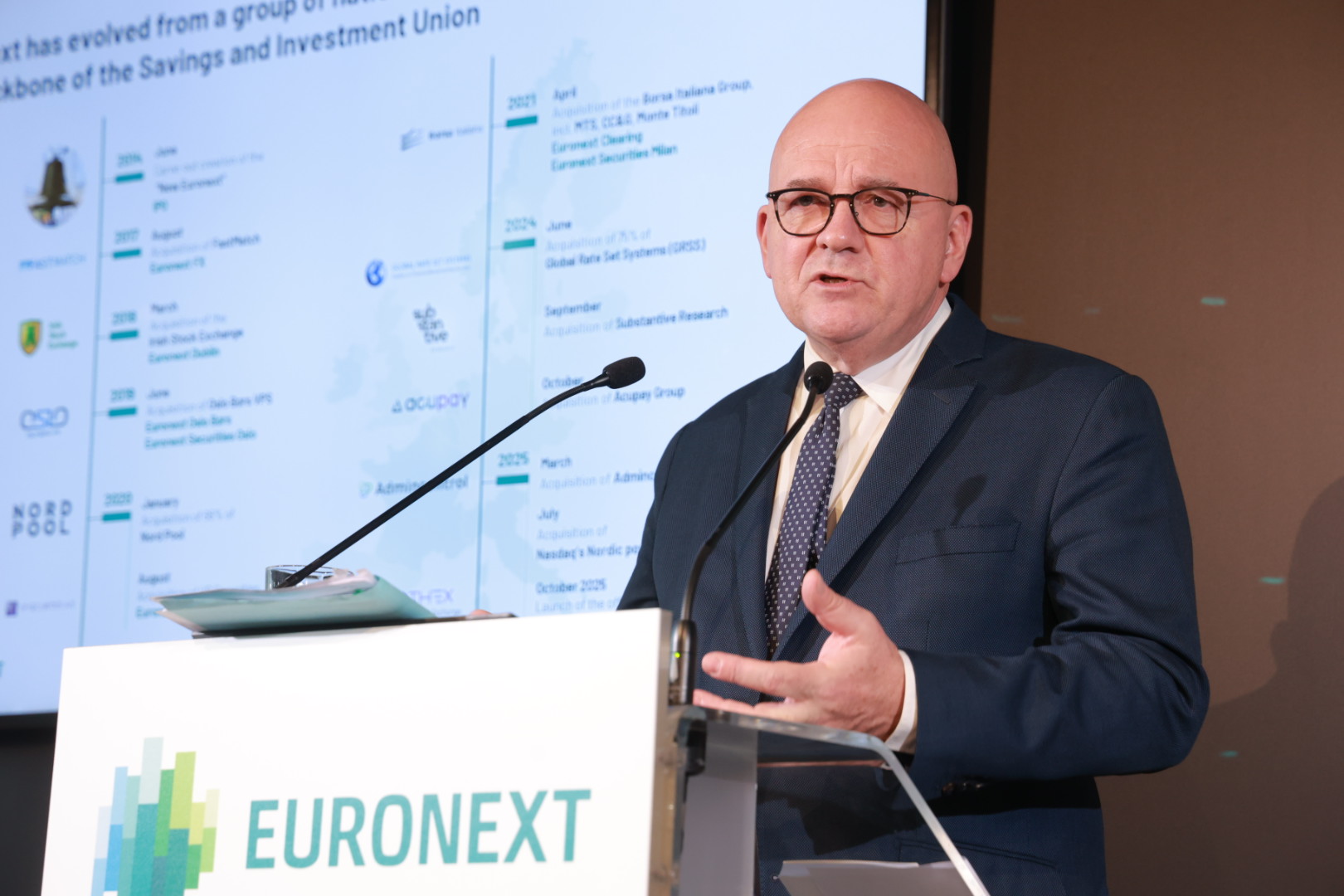 Ο Στεφάν Μπουζνά παρουσίασε το όραμα της Euronext για την επόμενη φάση ανάπτυξης, επισημαίνοντας ότι η ενσωμάτωση του ελληνικού χρηματιστηρίου στο δίκτυο της εταιρείας αποτελεί ένδειξη εμπιστοσύνης στην ελληνική οικονομία και στις προοπτικές των ελληνικών κεφαλαιαγορών.