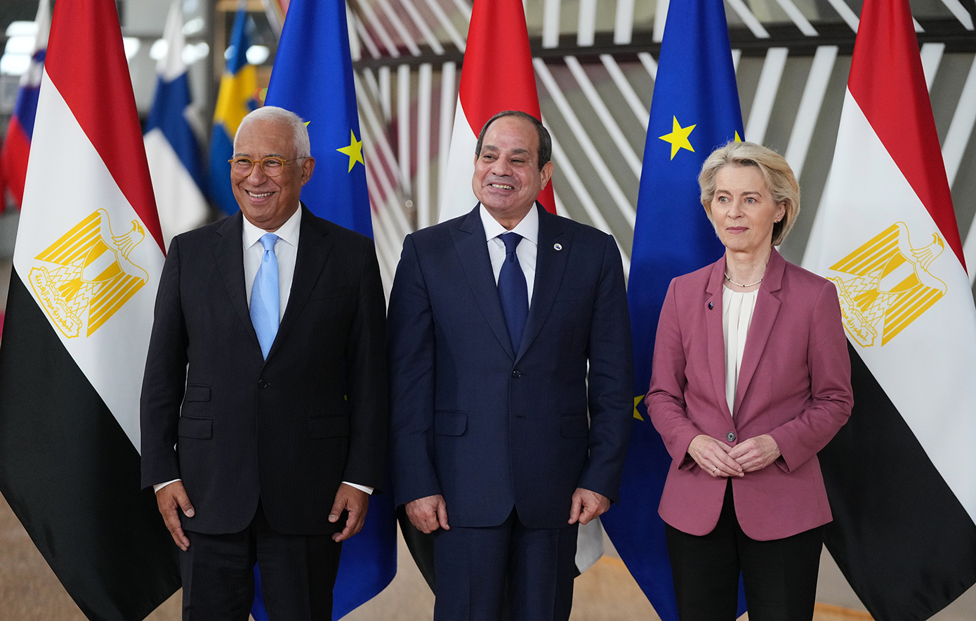 Ο πρόεδρος του Ευρωπαϊκού Συμβουλίου Αντόνιο Κόστα και η πρόεδρος της Ευρωπαϊκής Επιτροπής Ούρσουλα φον ντερ Λάιεν με τον Αιγύπτιο πρόεδρο Άμπντελ Φάταχ αλ Σίσι κατέληξαν σε μια εκτεταμένη Κοινή Διακήρυξη 23 σημείων, η οποία ενίσχυσε τη Στρατηγική και Ολοκληρωμένη Εταιρική Σχέση (SCP) μεταξύ των δύο πλευρών, βασισμένη στη Συμφωνία Σύνδεσης του 2004 και τις Προτεραιότητες Εταιρικής Σχέσης.