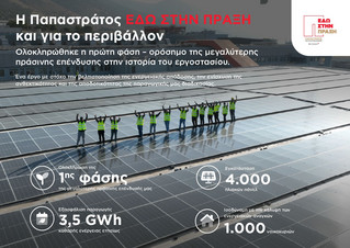 Η Παπαστράτος ανακοινώνει την ολοκλήρωση της πρώτης φάσης – ορόσημο της μεγαλύτερης «πράσινης» επένδυσης στην ιστορία της εταιρείας, που σηματοδοτεί τη μετάβαση του εργοστασίου της στον Ασπρόπυργο σε ένα πρότυπο βιώσιμης βιομηχανικής λειτουργίας. Πρόκειται για μία επένδυση που υλοποιείται στο πλαίσιο της στρατηγικής βιώσιμης ανάπτυξης της Παπαστράτος και του προγράμματος Zero Carbon Tech της μητρικής εταιρείας Philip Morris International (PMI).