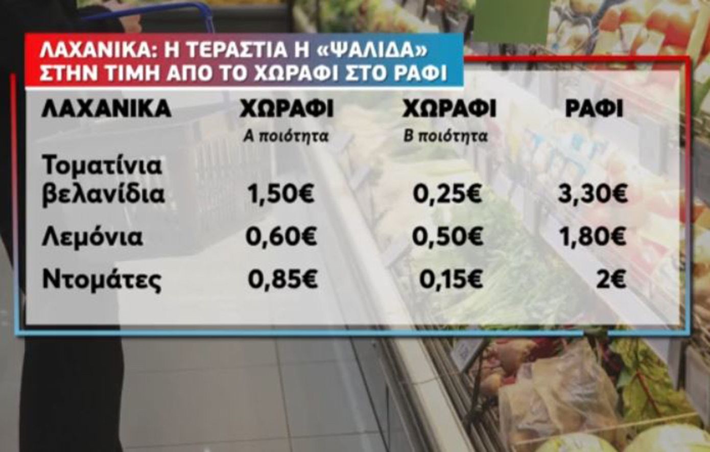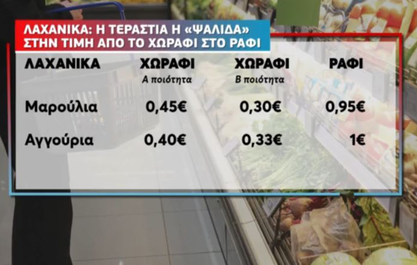 Σημειώνεται πως η τιμή στα μαρούλια αυξήθηκε σύμφωνα με το σχετικό ρεπορτάζ κατά 90% ενώ η τιμή στα αγγούρια κατά 120%.