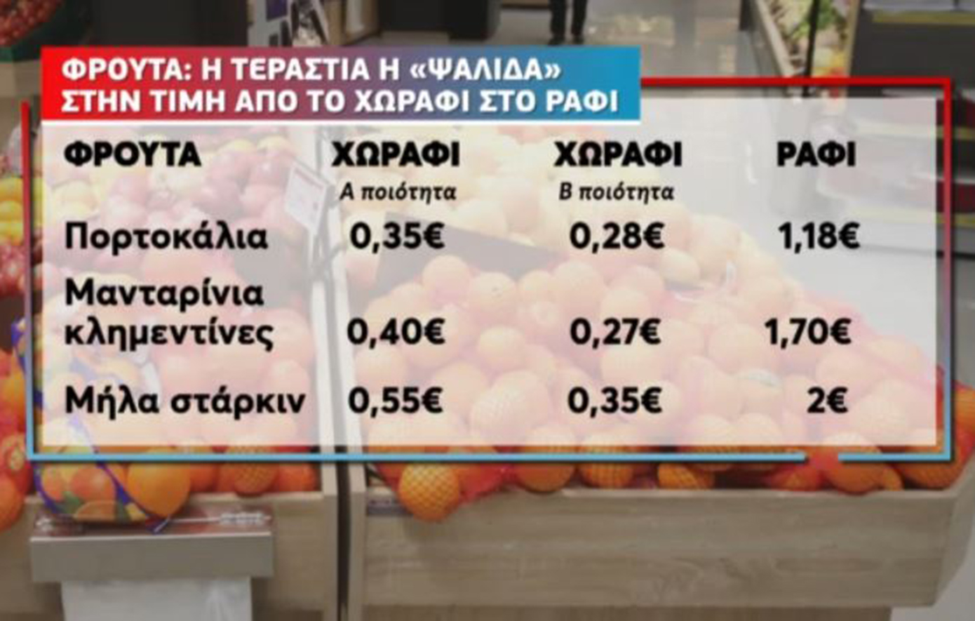Μέσα σε έναν χρόνο τα φρούτα έχουν πάρει αύξηση 9% σύμφωνα.