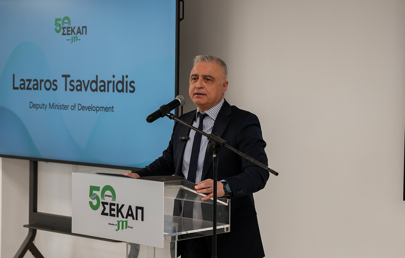 Στο πλαίσιο της εκδήλωσης, χαιρετισμό απηύθυνε ο Υφυπουργός Ανάπτυξης κ. Λάζαρος Τσαβδαρίδης, ο οποίος με αφορμή τη συμπλήρωση 50 ετών λειτουργίας της ΣΕΚΑΠ, υπογράμμισε ότι η επένδυση άνω των 40 εκατ. δολαρίων της JTI στο εργοστάσιο της Ξάνθης αποτελεί ισχυρή ψήφο εμπιστοσύνης στην αναπτυξιακή προοπτική της χώρας. Όπως ανέφερε, η Θράκη δεν αποτελεί την άκρη της Ελλάδας αλλά την αρχή της Ευρώπης, με τη μετεξέλιξη της ΣΕΚΑΠ σε έναν σύγχρονο εξαγωγικό κόμβο να αναδεικνύει το νέο παραγωγικό μοντέλο που προωθείται, ενώ τόνισε πως χτίζουμε μια οικονομία που προσελκύει διεθνείς κολοσσούς, παράγει πλούτο αφήνει σημαντικό κοινωνικό αποτύπωμα.