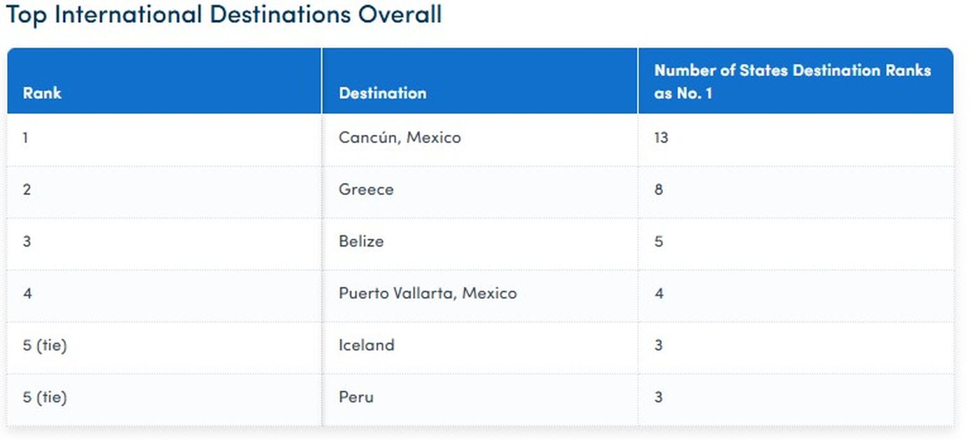 Η Ισλανδία και το Περού κατατάσσονται η καθεμία ως ο δημοφιλέστερος διεθνής προορισμός σε τρεις πολιτείες.