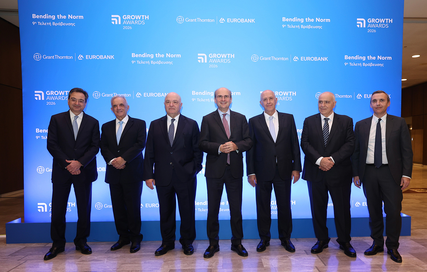 Οι 6 Growth Winners αναδείχθηκαν με βάση τη συνολική επιχειρηματική τους επίδοση, τη στρατηγική κατεύθυνση, τη δυναμική ανάπτυξης και τη συμβολή στην ενίσχυση της ελληνικής οικονομίας. Τα αποτελέσματα ανακοίνωσαν οι Πρόεδροι της Επιτροπής Βράβευσης των Growth Awards 2026, κ.κ. Γιώργος Π. Ζανιάς, Πρόεδρος του Διοικητικού Συμβουλίου της Eurobank και Βασίλειος Καζάς, Διευθύνων Σύμβουλος της Grant Thornton.