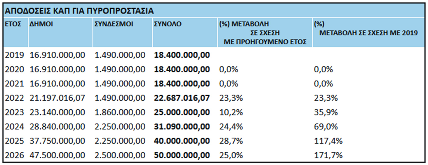 Χρηματοδότηση ύψους 50 εκατ. ευρώ, αυξημένη κατά 10 εκατ. ευρώ (25%) σε σχέση με το 2024, διατίθεται από το υπουργείο Εσωτερικών με απόφαση του υπουργού Θεόδωρος Λιβάνιου προς τους δήμους και τους Συνδέσμους τους για την υλοποίηση δράσεων πυροπροστασίας το 2026.