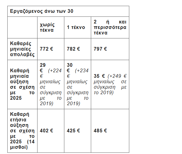 Από το 2019, η σωρευτική αύξηση αγγίζει τα 270 ευρώ μηνιαίως ή 3.780 ευρώ ετησίως, 4,2 έως 5,8 μισθοί παραπάνω, δηλαδή 41,54% συνολική αύξηση από το 2019.