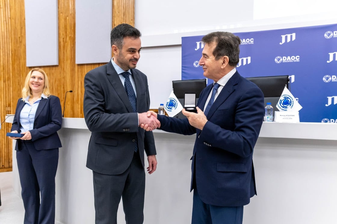 Ο κ. Byrne, από την πλευρά του, εξήρε την επιχειρησιακή αποτελεσματικότητα της Δ.Α.Ο.Ε., τονίζοντας ότι η JTI θα συνεχίσει να είναι συστηματικός αρωγός στο απαιτητικό έργο της.