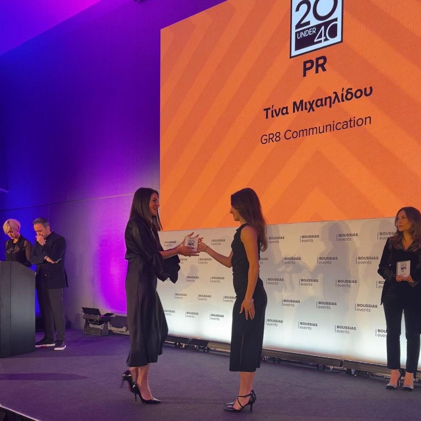 Η GR8 Communication ξεχώρισε στα PR Awards 2026, αποσπώντας το Bronze βραβείο στην κατηγορία AI-Driven PR, για την καλύτερη αξιοποίηση της τεχνητής νοημοσύνης στην παραγωγή περιεχομένου. Παράλληλα, η ιδρύτριά της, Τίνα Μιχαηλίδου, για ακόμα μια χρονιά συμπεριλήφθηκε στη λίστα «20under40 PR» του Marketing Week, αναδεικνύοντας την ηγετική της παρουσία στον χώρο της επικοινωνίας.