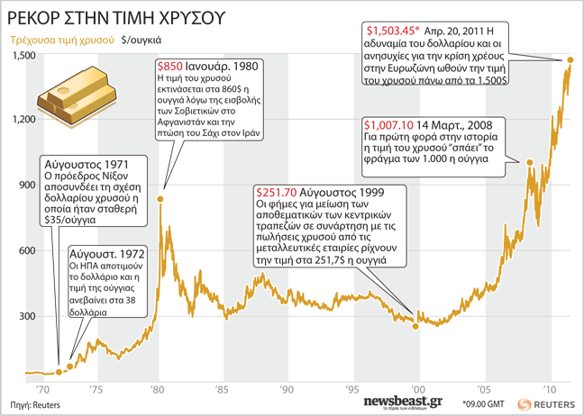 Παρακάτω διακρίνετε αναλυτικά την πορεία του «καταφύγιου της κρίσης» κατά τις τελευταίες τρεις δεκαετίες.