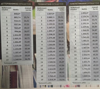 Αντίθετα ένας υπάλληλος τεχνολογικής εκπαίδευσης με 26 χρόνια υπηρεσίας και μισθό 1601 ευρώ/μήνα θα καταταγεί με βάση το νέο μισθολόγιο στο 12 κλιμάκιο και θα έχει πλέον ονομαστικό βασικό μισθό 1.478 ευρώ. Για να μην χάνει τα 123 το μήνα βάσει του νέου κλιμακίου θα πάρει προσωπική διαφορά η οποία με την πάροδο των ετών θα μειώνεται.