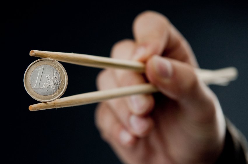 Πεινάει κανείς για ευρώ; Οι Κινέζοι πάντως το προσφέρουν με chopsticks… Η φωτογραφία παραπέμπει στην προσφορά για επενδύσεις με στόχο την ενίσχυση της Ευρωζώνης.