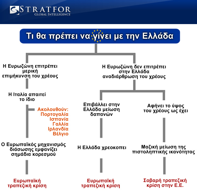Απαισιόδοξες είναι οι εκτιμήσεις του γνωστού αμερικανικού Ινστιτούτου Γεωπολιτικών, Στρατηγικών καθώς και Οικονομικών Αναλύσεων, Stratfor, για την κρίση χρέους της Ελλάδας και κατ’ επέκτασιν της Ευρωζώνης.