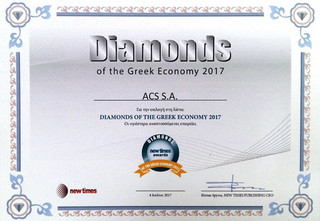Διάκριση απέσπασε φέτος η ACS στην εκδήλωση «Diamonds of the Greek Economy», που επιβραβεύει την υγιή επιχειρηματική δραστηριότητα της Ελλάδας και η οποία έλαβε χώρα στις 4 Ιουλίου στο Grande Bretagne Hotel Athens, υπό την αιγίδα του Χρηματιστηρίου Αθηνών και του ΕΟΤ.