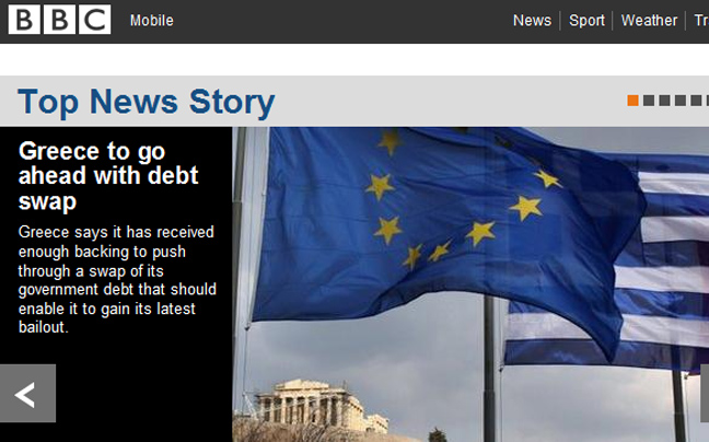 «Η ελληνική κυβέρνηση πως έχει στήριξη για την ανταλλαγή ομολόγων πουν θα της επιτρέψει να αποφύγει τη χρεωκοπία», γράφει το BBC.