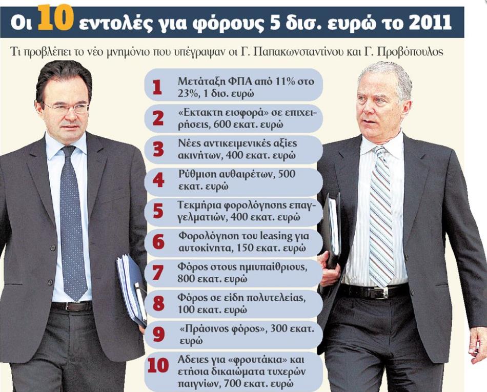 Δέκα νέοι έμμεσοι και άμεσοι φόροι με στόχο την είσπραξη 5 δισ. ευρώ έρχονται το 2011.