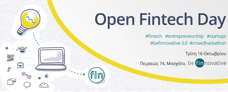 Η Εθνική Τράπεζα σε συνεργασία με την εταιρεία τεχνολογίας και καινοτομίας Crowdpolicy, σας προσκαλούν στην ανοικτή εκδήλωση Open Fintech Day, που θα πραγματοποιηθεί την Τρίτη 16 Οκτωβρίου 2018 και ώρα 18:00, Πειραιώς 74, στο Μοσχάτο. Η ατζέντα της εκδήλωσης περιλαμβάνει: