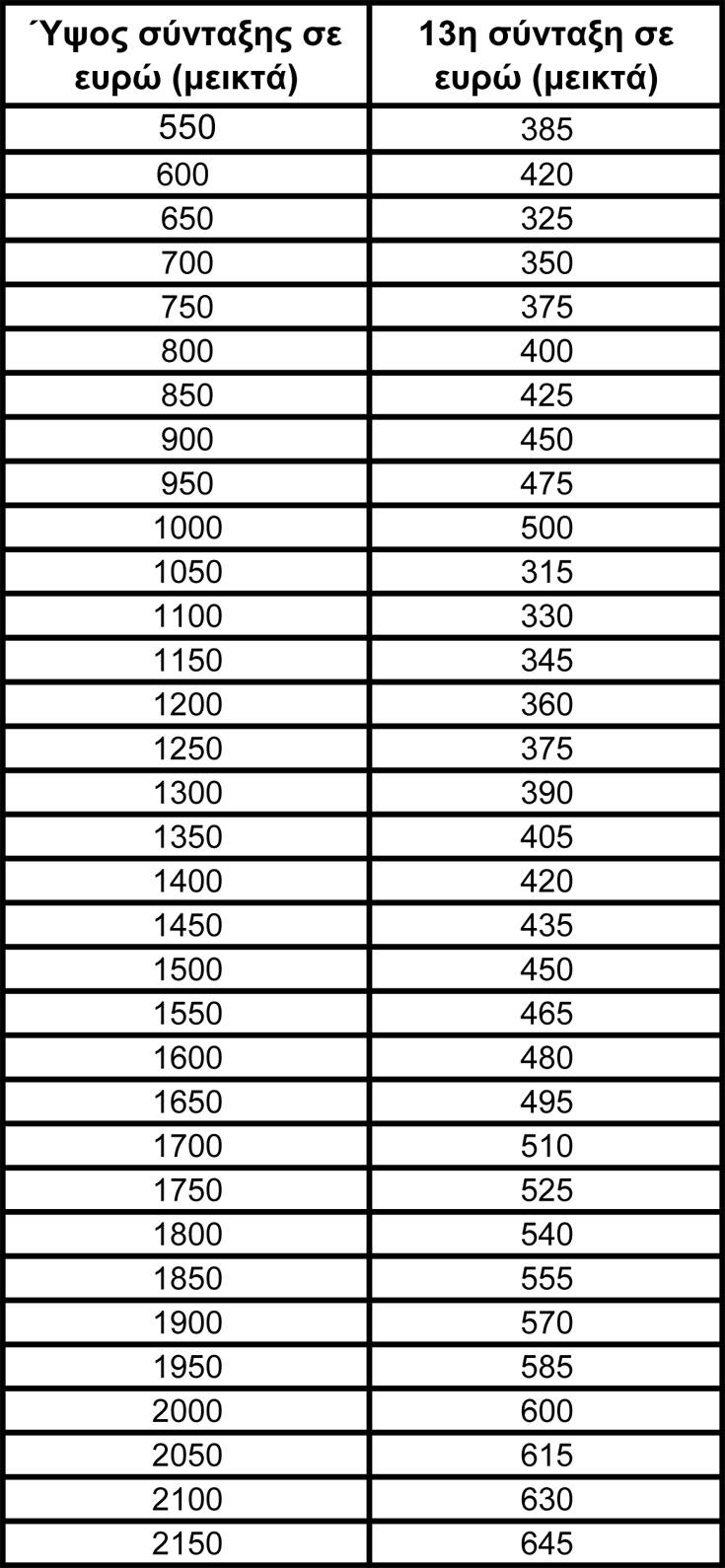 Βάση υπολογισμού αποτελεί το ποσό της ακαθάριστης μηνιαίας κύριας σύνταξης ή του ακαθάριστου ποσού που χορηγείται από τον Οργανισμό Προνοιακών Επιδομάτων και Κοινωνικής Αλληλεγγύης (ΟΠΕΚΑ) μηνός Μαΐου του έτους χορήγησής της, ενώ, ειδικά, στην περίπτωση που το ίδιο πρόσωπο δικαιούται περισσότερες από μία κύριες συντάξεις ή/και επίδομα σύνταξης με αιτία την αναπηρία, το ποσό της 13ης σύνταξης υπολογίζεται επί του αθροίσματός τους.