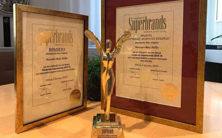 Η Mercedes-Benz Ελλάς έλαβε την υψηλότερη βαθμολογία ως Corporate Superbrand 2018 – 2019 στην κατηγορία «Αυτοκίνητο – Μοτοσικλέτα», έχοντας να ανταγωνιστεί άλλες 6 αξιόλογες εταιρείες του κλάδου.