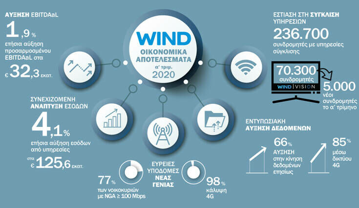 - Η WIND VISION έχει συνολικό αριθμό συνδρομητών 300 στο τέλος Μαρτίου, μετρώντας 5.000 νέους στο πρώτο τρίμηνο του 2020