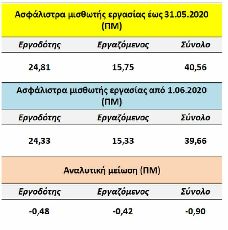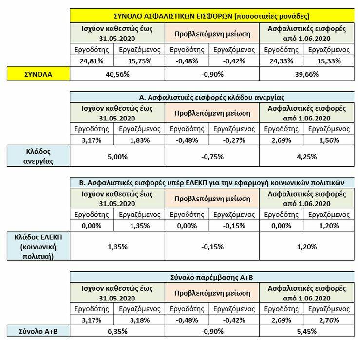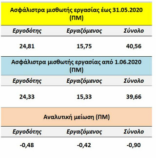 Μετά από αυτή τη μείωση, το σύνολο των ασφαλιστικών εισφορών έχει ως ακολούθως: