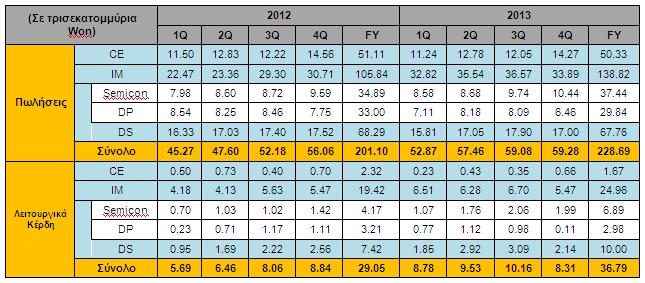 Σημείωση 2: CE (Consumer Electronics), IM (IT& Mobile Communications), DS (Device Solutions), DP (Display Panel).