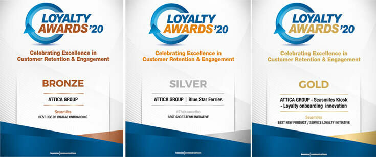 Η Attica Group, μητρική εταιρεία των SUPERFAST FERRIES, BLUE STAR FERRIES και HELLENIC SEAWAYS, με ιδιαίτερη ικανοποίηση ανακοινώνει τη διάκρισή της με 3 βραβεία στα Loyalty Awards 2020.