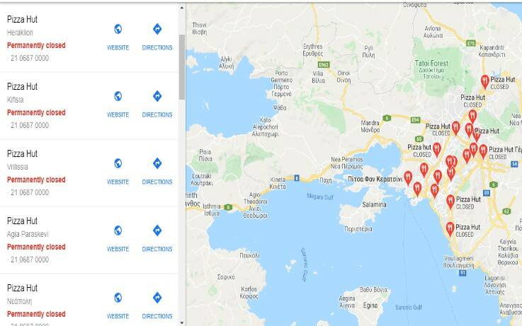 Μάλιστα, και η σελίδα της Pizza Hut έχει «πέσει» ενώ στην αναζήτηση των καταστημάτων μέσω της Google βγαίνει ότι είναι κλειστά για πάντα.