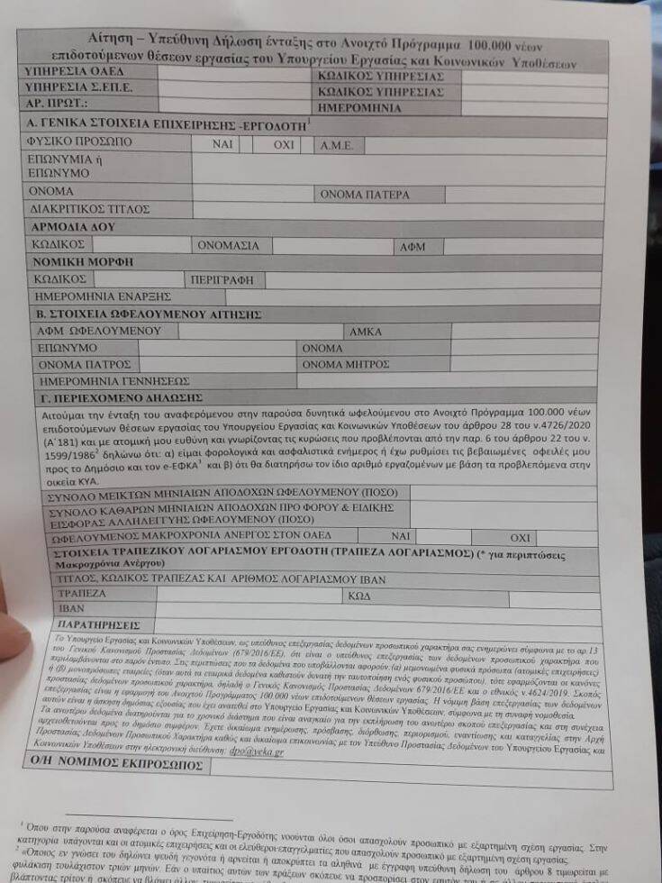 Η αίτηση-υπεύθυνη δήλωση παραχωρήθηκε από το Αθηναϊκό Πρακτορείο