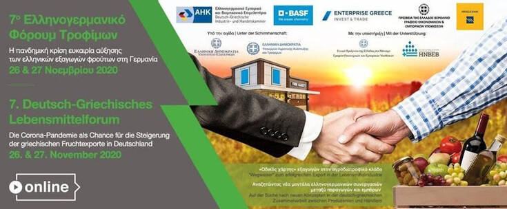 To 7ο Ελληνογερμανικό Φόρουμ Τροφίμων με τίτλο «Η πανδημική κρίση ευκαιρία αύξησης των ελληνικών εξαγωγών φρούτων στη Γερμανία» διοργανώνουν, 26 και 27 Νοεμβρίου, το Ελληνογερμανικό Εμπορικό και Βιομηχανικό Επιμελητήριο, η BASF Ελλάς ΑΒΕΕ, η Τράπεζα Πειραιώς, το Γραφείο Οικονομικών και Εμπορικών Υποθέσεων της Πρεσβείας της Ελλάδας στο Βερολίνο και η Enterprise Greece Invest & Trade.