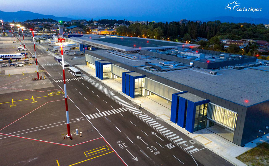 Το ίδιο ισχύει και για το «Ιωάννης Καποδίστριας της Κέρκυρας που παραδόθηκε το δεύτερο τρίμηνο του 2020. Ο νέος τερματικός σταθμός επιφάνειας 10.400τ.μ. ως επέκταση του υφιστάμενου φιλοξενεί 28 check-in, 8 σημεία ελέγχου και 12 πύλες αναχώρησης.