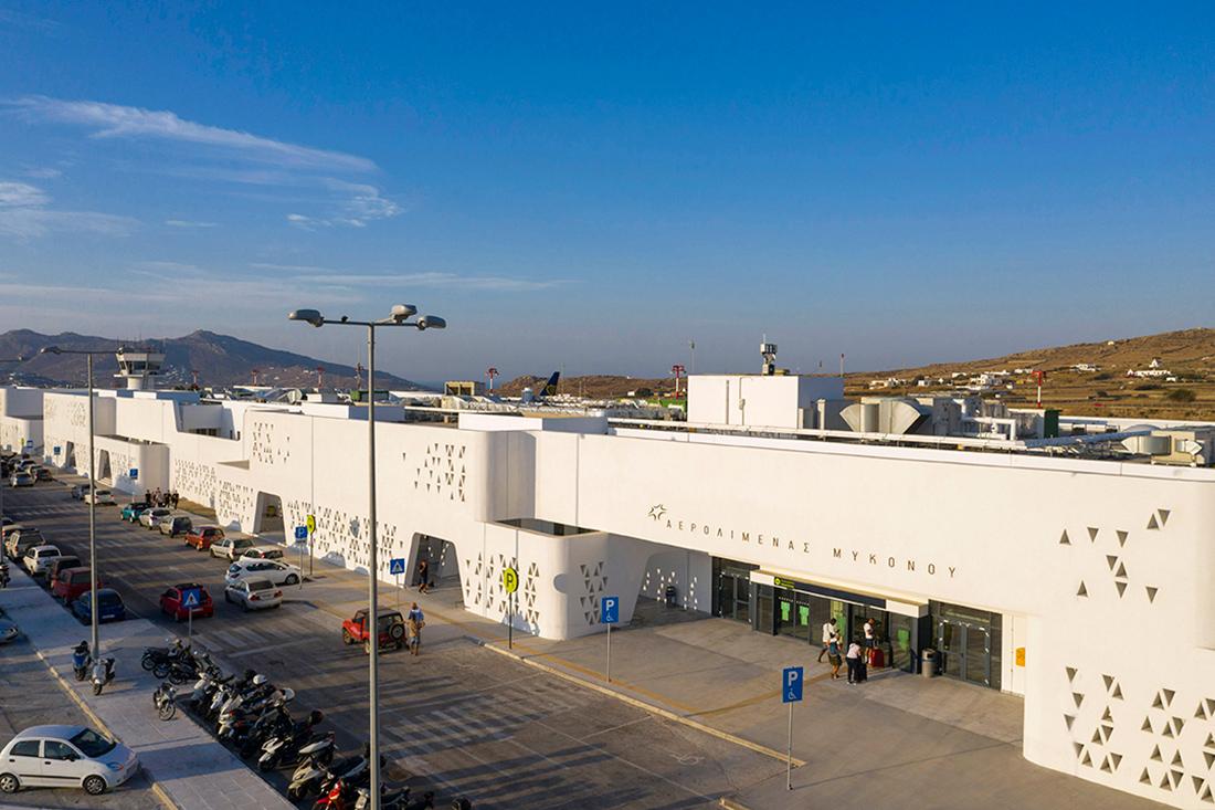 Ο ολοκαίνουργιος και μεγαλύτερος κατά 50% αεροσταθμός στο αεροδρόμιο Μυκόνου, ένα στολίδι για το νησί που συνδυάζει την κυκλαδίτικη αρχιτεκτονική με τις σύγχρονες αεροδρομικές υποδομές, έχει πλέον περισσότερα check-in και πύλες αναχωρήσεων ενώ έχει αξιοποιηθεί πλήρως η επέκταση του τερματικού σταθμού για τη διευκόλυνση των επιβατών και των χρηστών του αερολιμένα.