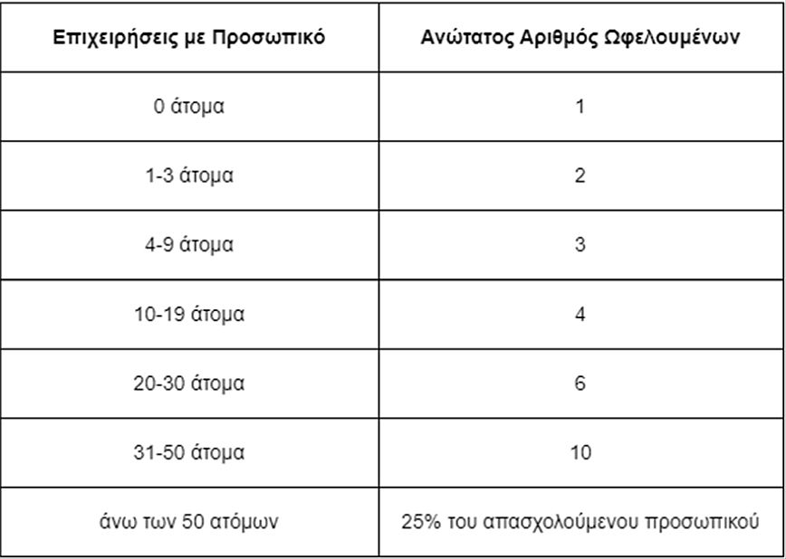 Οι επιχειρήσεις εντάσσονται στο πρόγραμμα, ανάλογα με το προσωπικό τους, ως εξής: