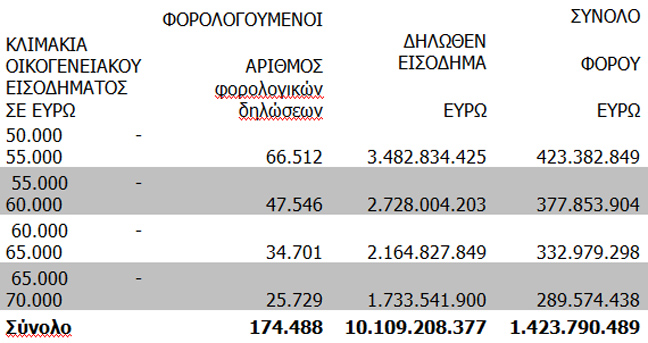 Και εκείνοι που δηλώνουν εισόδημα από 50.000 έως 70.000 ευρώ πληρώνουν το 20% του συνολικού φόρου εισοδήματος φυσικών προσώπων.