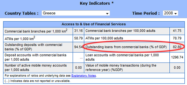 Μια πλασματική εικόνα για τα επίπεδα του ιδιωτικού χρέους στην Ελλάδα δημιουργεί η μεγάλη υποχώρηση του ΑΕΠ στην περίοδο 2008-2013, όπως υποδεικνύουν τα στοιχεία που περιλαμβάνονται στην έκθεση του Διεθνούς Νομισματικού Ταμείου για την χρηματοοικονομική πρόσβαση (Financial Access Survey).