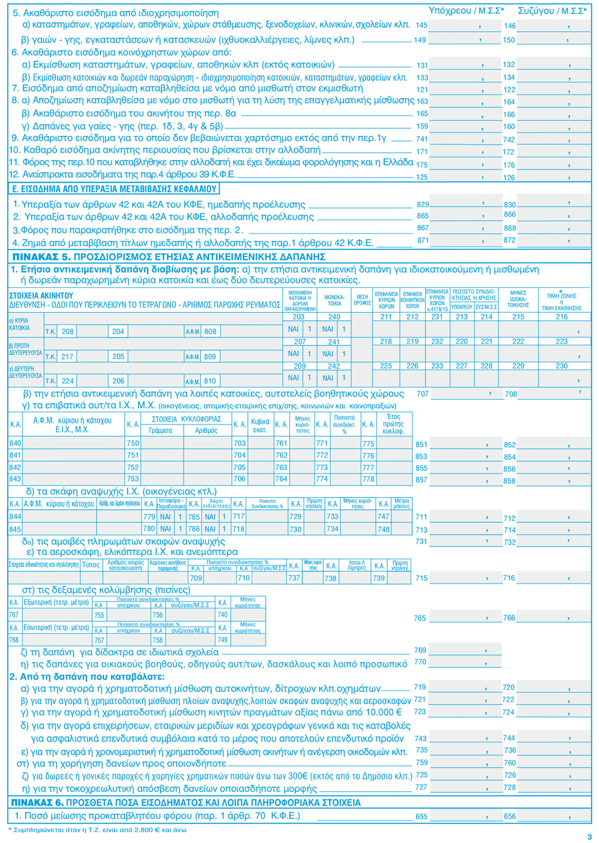 Οι αλλαγές που θα συναντήσουν οι φορολογούμενοι κατά την συμπλήρωση του νέου εντύπου Ε1 είναι οι εξής: